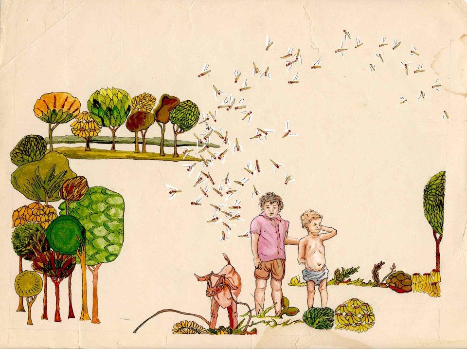 This work is a reference to my childhood in Pakistan. I was inspired by Pakistani miniature paintings of myths and sagas, and created my own scenes of memories of my home country. Find more of Sampson’s work on her website.