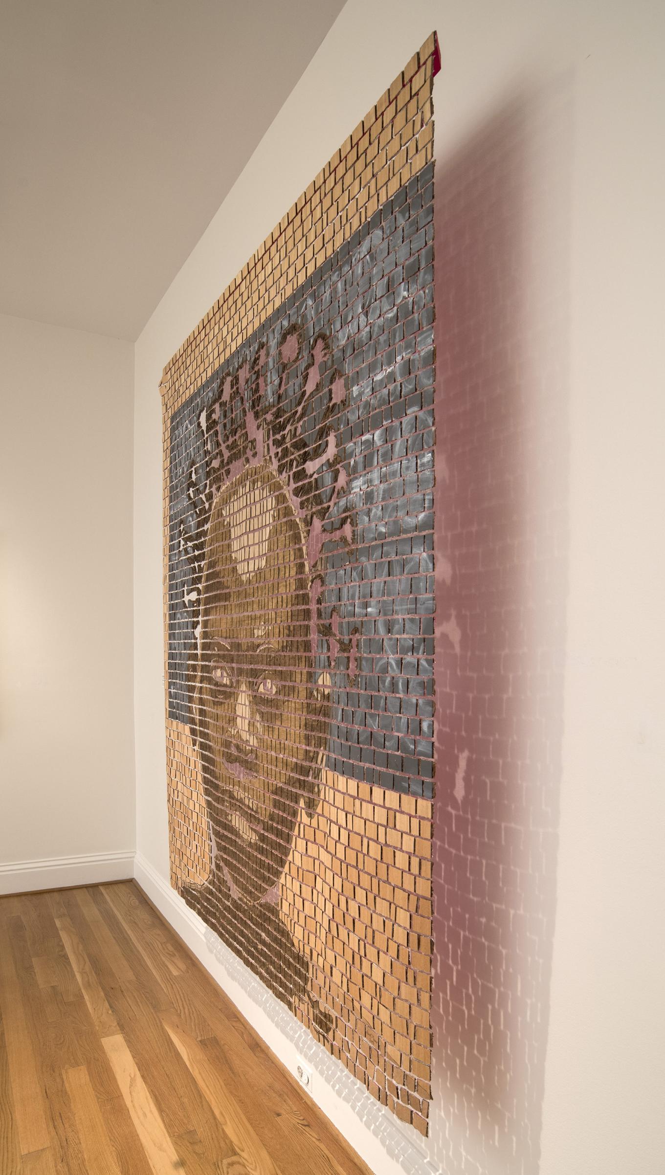 Congolese artist Aimé Mpane (b. 1968), the son of a sculptor and cabinet-maker, and a sculptor and painter himself, splits his time between Kinshasha, Democratic Republic of Congo, and Brussels, Belgium. His work is deeply humanistic and appeals to the collective historical consciousness. Working primarily with wood and an adze—a traditional African woodworking tool—Mpane creates sculptures, mosaic-like wall hangings, and portraits carved on wood that explore the character of contemporary Congo, while demonstrating a deep understanding of its history. Mpane’s artworks often address the aftermath of Belgian colonialism and the Mobutu regime in Congo, while his brightly painted portraits of the men, women, and children he meets on the streets of Kinshasa give insight into modern Congolese identity. As he has said, “My work tells of hope, courage, empathy, and endurance.” The Phillips Collection recently acquired Maman Calcule, 2013, a powerful example of Mpane’s larger mosaic works made up of over a thousand small painted blocks of plywood.