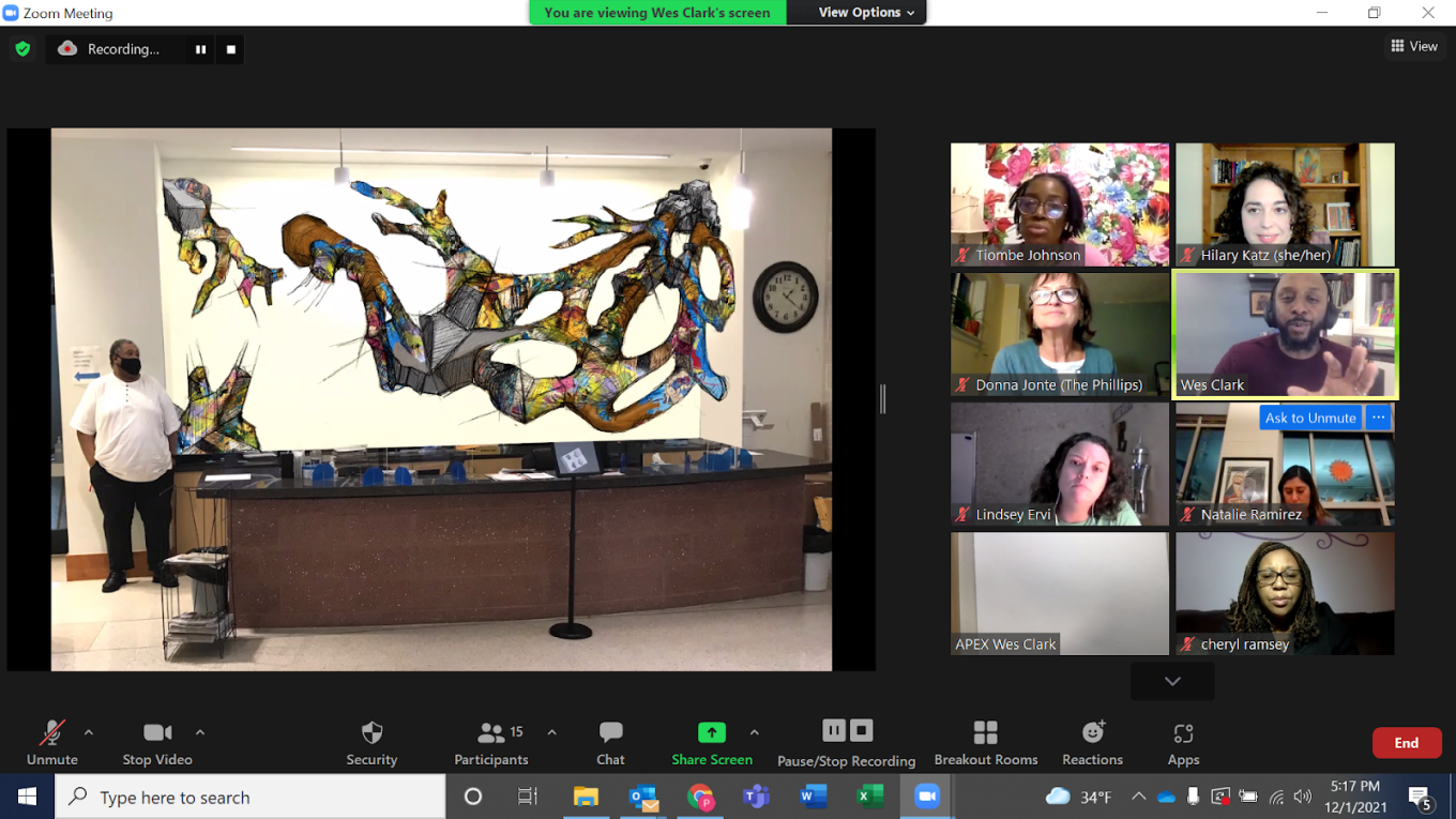 Screenshot of the teachers in conversation with artist Wesley Clark