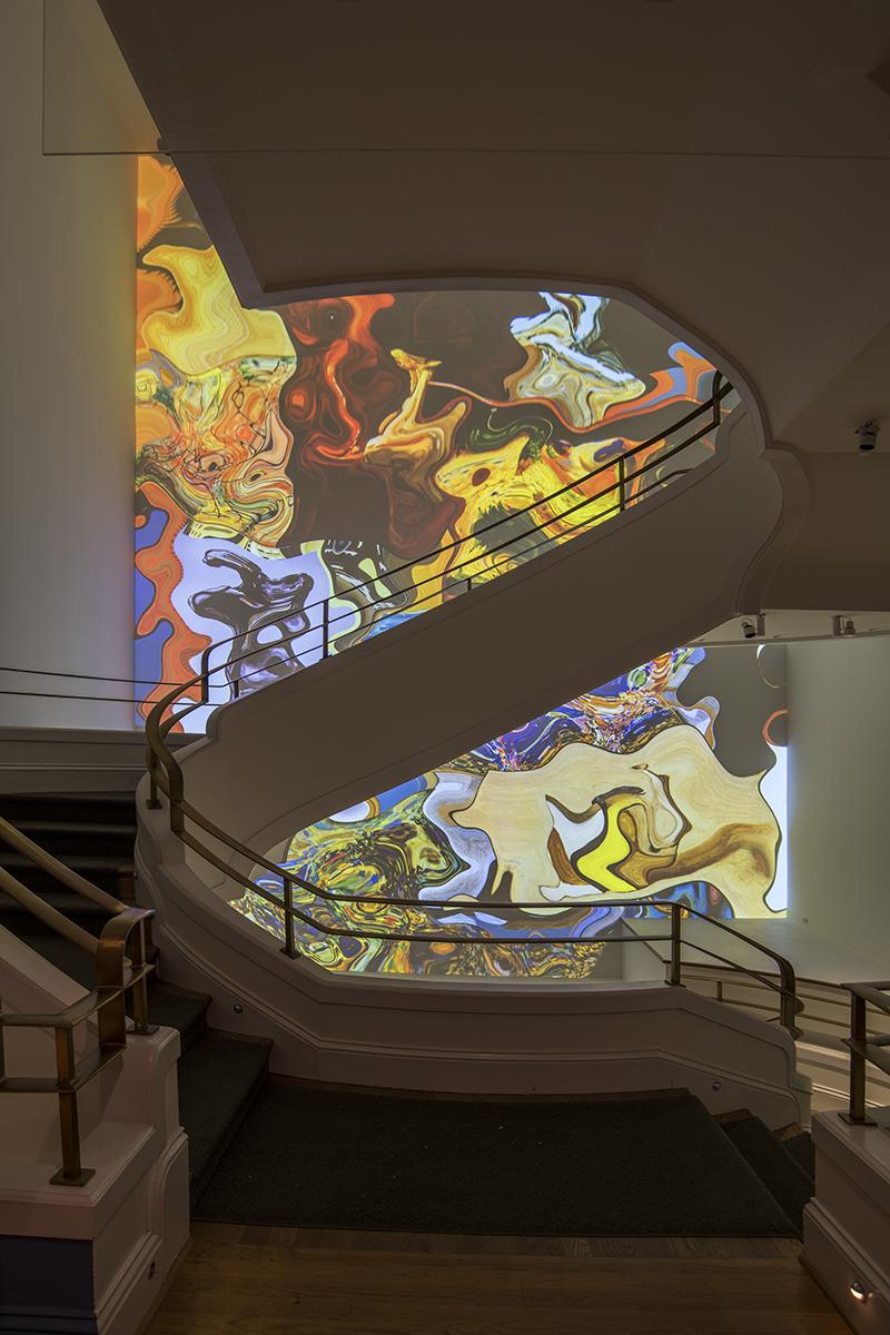 Daniel Canogar’s Digital Intersections project Amalgama Phillips (2021) in the Goh Annex Stairwell