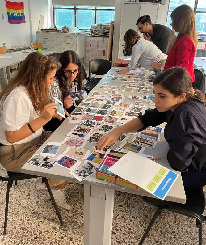 Teens engaging with Phillips Art Cards in the Dedalus art studio