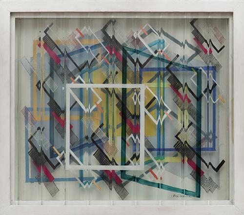 Irene Rice Pereira, Transversion, 1946, Ceramic fluid, porcelain cement, oil paint on two planes of corrugated glass mounted on hardboard and wood, 13 1/2 x 15 3/4 in., The Phillips Collection, Acquired 1949
