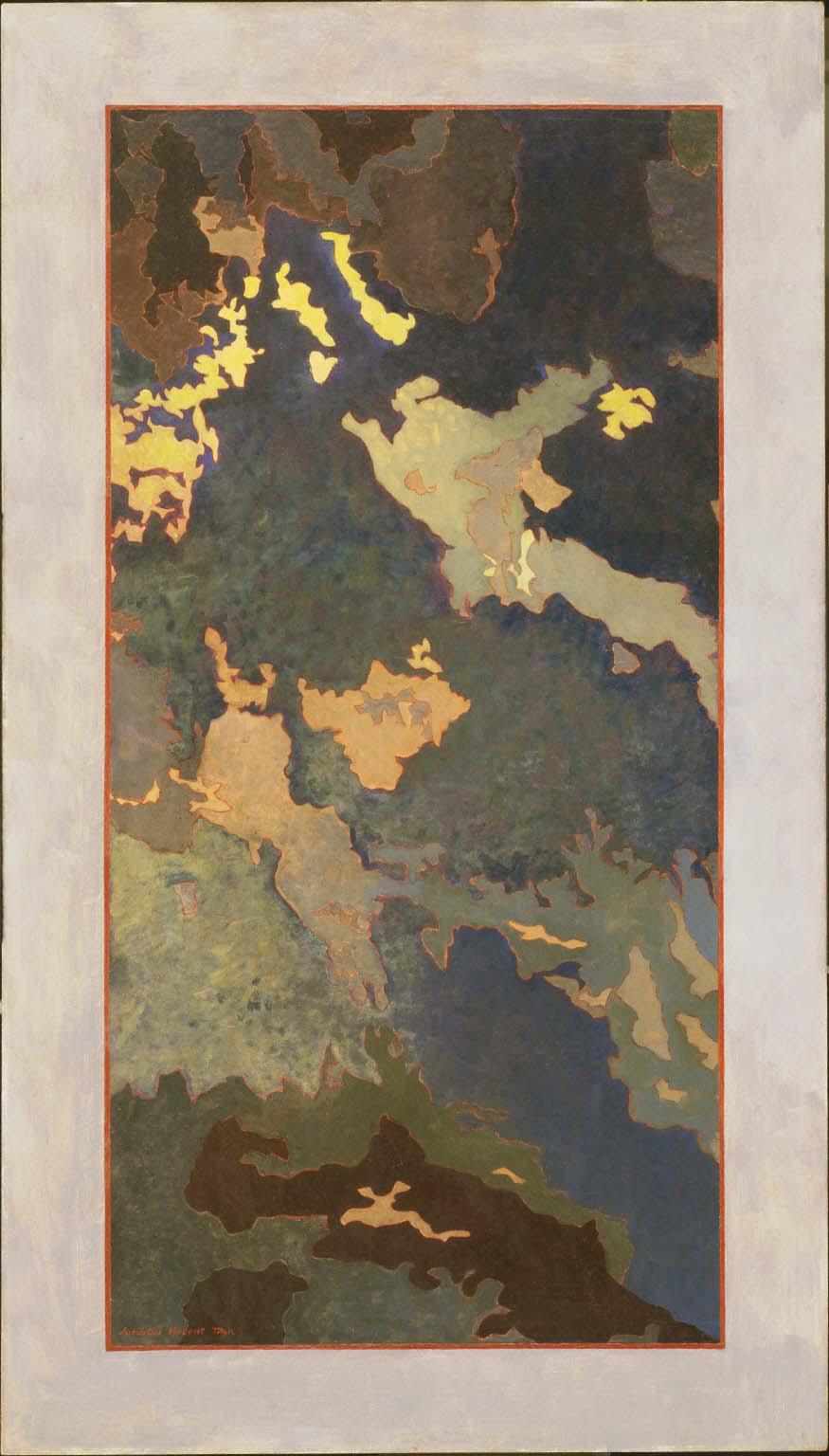 Probably inspired by a trip to California in the summer of 1933, Night, Amaragosa Desert is one of the most important abstractions Tack created in the 1930s. It is the foremost example of expressionist brushwork in his late abstractions, while the somber color harmonies create a sense of mystery and loneliness that suggests nature’s cataclysmic grandeur.