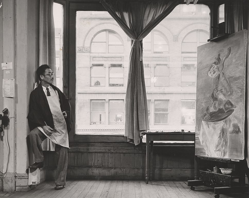 Max Yavno, Yasuo Kuniyoshi in his studio, 1940 Oct. 31. Federal Art Project, Photographic Division collection, c. 1920-65. Archives of American Art, Smithsonian Institution.