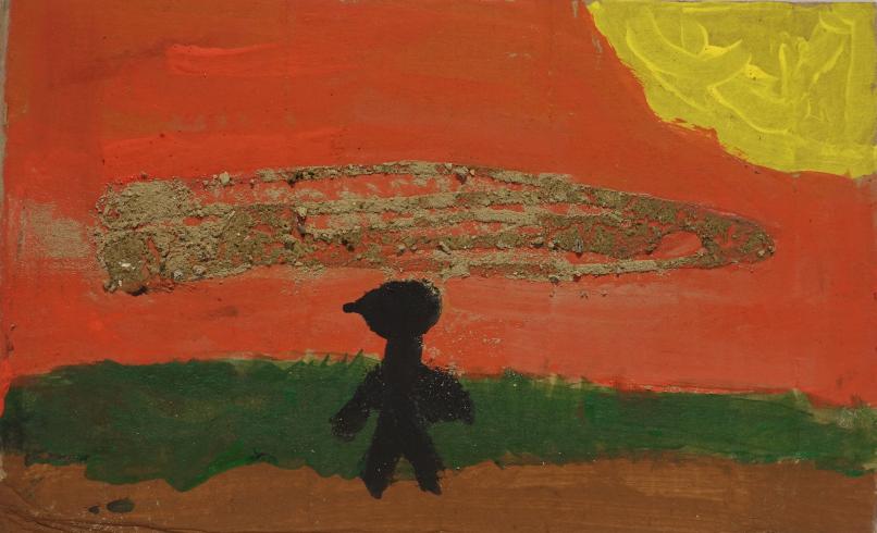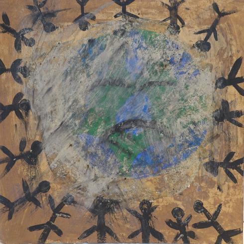 IMAGE: Manyolo Estella Betty (1938-1999, Uganda), Cattle People, c. 1961, Acrylic on canvas, 50 x 38 in., Fisk University Galleries, Fisk University, Nashville, TN, Gift of the Harmon Foundation, 1991.1039